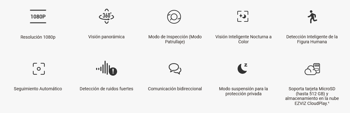 | Almacenamiento en la Nube | Soporta almacenamiento en EZVIZ CloudPlay (se requiere suscripción) |